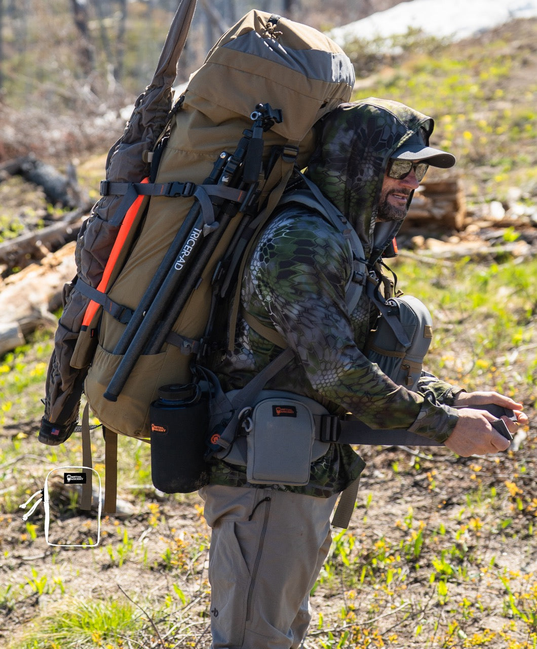• The material we use is a 500D Cordura which is very water resistant but not waterproof. If your hunting in wet environment, we recommend out IA Rain Cover.